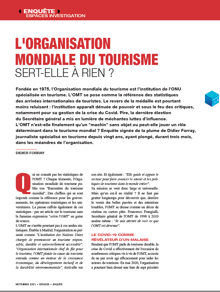 Fondée en 1975, l'Organisation mondiale du tourisme est l'institution de l'ONU spécialisée en tourisme. L'OMT se pose comme la référence des statistiques des arrivées internationales de touristes. Le revers de la médaille est pourtant moins [...]