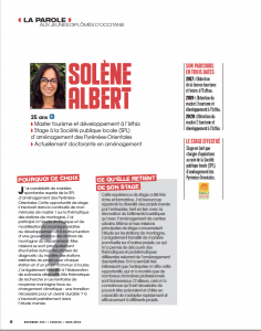 25 ans ◗ Master tourisme et développement à l’Isthia ◗ Stage à la Société publique locale (SPL) d’aménagement des Pyrénées-Orientales ◗ Actuellement doctorante en aménagement