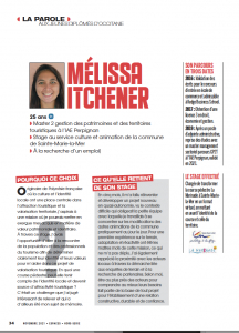 25 ans ◗ Master 2 gestion des patrimoines et des territoires touristiques à l’IAE Perpignan ◗ Stage au service culture et animation de la commune de Sainte-Marie-la-Mer ◗ À la recherche d’un emploi