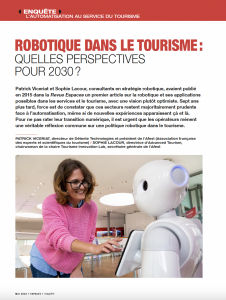 Patrick Viceriat et Sophie Lacour, consultants en stratégie robotique, avaient publié en 2015 dans la Revue Espaces un premier article sur la robotique et ses applications possibles dans les services et le tourisme, avec une [...]