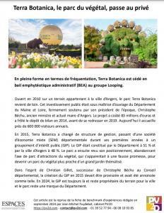 En pleine forme en termes de fréquentation, Terra Botanica est cédé en bail emphytéotique administratif (BEA) au groupe Looping. [...]